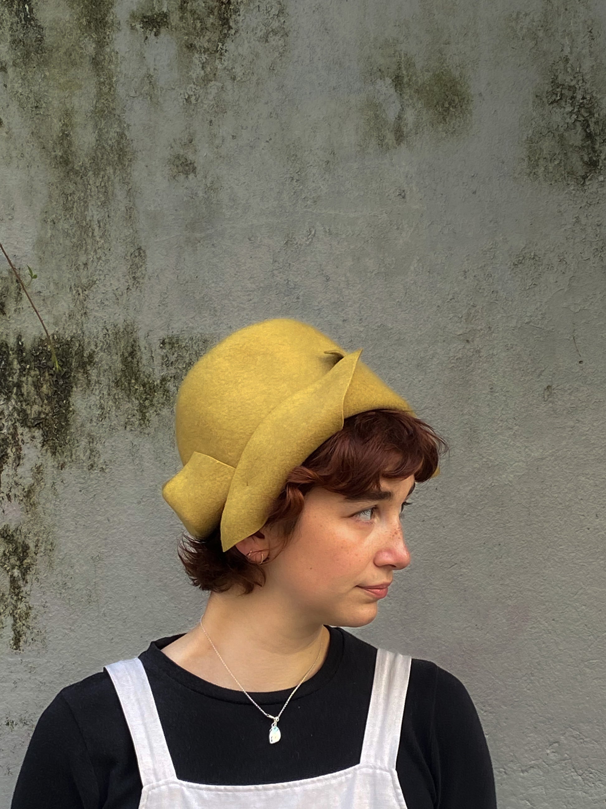 Folded asymmetrical fur felt hat - Origami - mustard yellow - Tomoko Tahara millinery works